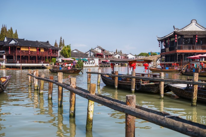 Ne nadarmo se městečku říká „Šanghajské Benátky“. Ráz celého místa Benátky opravdu připomíná – kanály, úzké uličky, mosty a spousta lodiček, které vozí turisty. Nedovedu si představit běžný turistický den zde, bez omezení cestování. Většinou všude býváme skoro jedinými Evropany, ale i tak tu bylo celkem dost lidí. Za normální situace musí být městečko přeplněné. Byl pátek dopoledne a vodní městečko žilo…